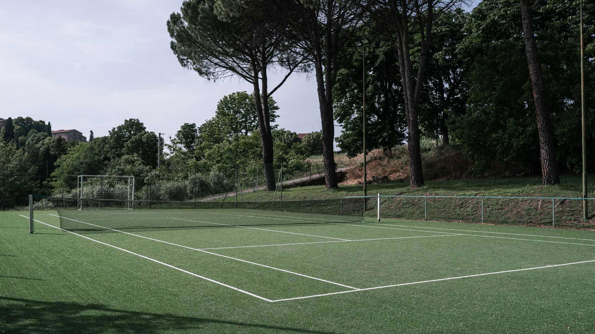 Il nostro campo da tennis è la perfetta aggiunta al tuo soggiorno, con una superficie in erba sintetica, può essere prenotato dai nostri ospiti in qualsiasi momento. Che tu sia un giocatore esperto o che cerchi semplicemente un po' di divertimento, siamo pronti a soddisfare le tue esigenze fornendoti tutte le attrezzature necessarie. Lasciati ispirare dal bellissimo paesaggio circostante mentre giochi.